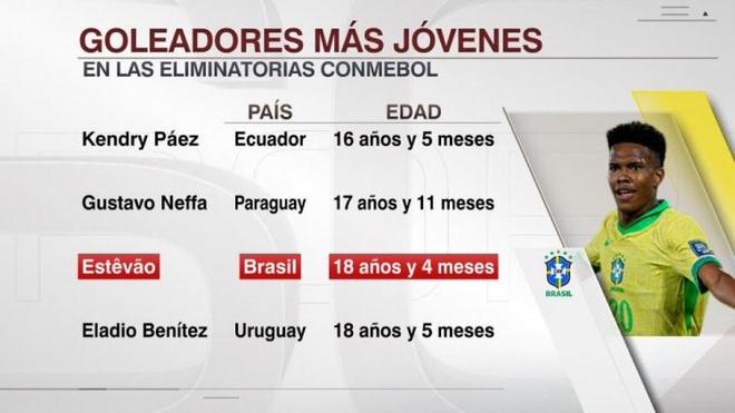 9月5日的现场直播,今天早上与有资格的南美世界杯,埃斯特万(Estewan)赢得了倒钩,巴西以2-0领先智利。根据ESPN统计,现年18岁且4个月的Estewan是南美合格世界杯历史上第三年级的进球者。南美世界杯世界杯世界杯的射程:PAIS -16年零5个月 - 17年零11个月 - 18年零4个月Elatio Benitez -18年零5个月