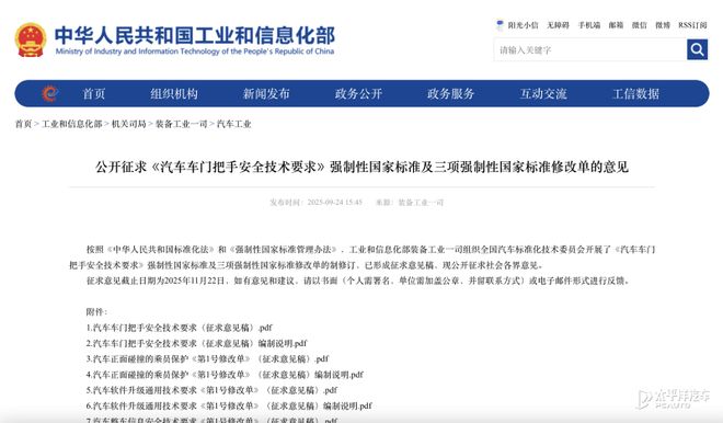 [Pacific Automobile行业频道] 9月24日,这家太平洋汽车根据工业和信息技术部的官方网站从“中华人民共和国的标准化法”和“强制性国家标准管理措施”和“国家自动摩托技术委员会进行技术委员会”技术委员会技术委员会授予“ National Indertion技术委员汽车门门把手”和三个nandled国家标准的修订。征求意见的草案已形成。生活中各种情况的意见都公开要求公开。提出意见的截止日期是2025年11月22日。行业和信息技术部的举动旨在应付希德的新技术和新的安全需求en隐藏的门,其他标准并提高门处理的安全性,并为车辆安全开发坚固的底线。吉利(Geely)作为车辆公司的联合领先单位,已经执行了相关的研究和制定标准。根据准备“为车门手柄安全的技术要求”的说明(出于意见要求的草稿),该标准的主要目的是指导企业标准门处理产品设计,提高门处理人员的安全性,并全面提高车辆安全水平。在手柄外面的门上,供应意见的草稿清楚地表明,每个门(不包括后挡板)应配备带有机械功能的手柄外部门。当锁定装置处于锁定状态并部署不可逆的约束装置或发生电池的热事件时,应通过门外门打开非碰撞侧门e手柄无工具的帮助。同时,当外门处于任何状态时,身体的相对儿童表面应具有手术空间,该空间不应小于60mm×20mm×25mm。要求提出意见的草案规定,该文件增加了对事后功能,布局位置和车门手柄的手工操作空间的相关要求,以改善救援的ka kacomfort,这也意味着,明确禁止使用完全隐藏的汽车门把手设计。完全隐藏的门旋钮的半隐藏旋钮,要求意见的草稿表明,每个门(不包括后挡板)应配备带有机械放电功能的旋钮,并且可以释放门锁,并且在没有外部工具的情况下打开门;如果配备了电门的手柄,则必须在机械放电的门把手上与E的手柄一起使用正交正交。近年来,随着车辆电气化和智能的快速发展,隐藏的门结被广泛使用,其优势(例如美学和强力技术)。但是,市场上此类产品的工作原理和形式不同。该应用暴露了诸如强度不足,控制逻辑的潜在安全风险,识别和操作难度(隐藏和未标记),电力故障以及手夹紧诸如逃脱和救援的潜在风险。此时设定的标准优先考虑安全性和可靠性,这可以有效地解决消费者关注的汽车使用点,提高汽车安全性以及行业健康发展的标准。早在上海的上海汽车展览会上,盖利就宣布,它将与整个行业的专利共享六个主要的安全专利门。公共信息显示,盖利透露了PSATENT在高达1,562的自动安全技术领域,该技术首先排名中国汽车公司;今年9月初,盖利(Geely)领导了各种安全标准的参与。 (文字:pacaleauto li Zhe)